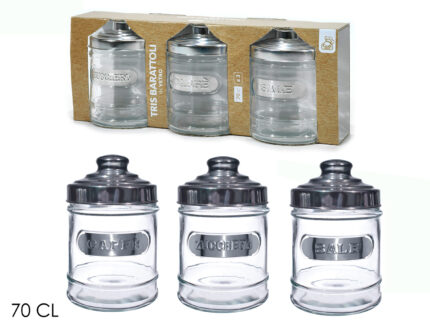 Tris Barattoli da Cucina in Vetro con coperchio – Sale, Zucchero, Caffè