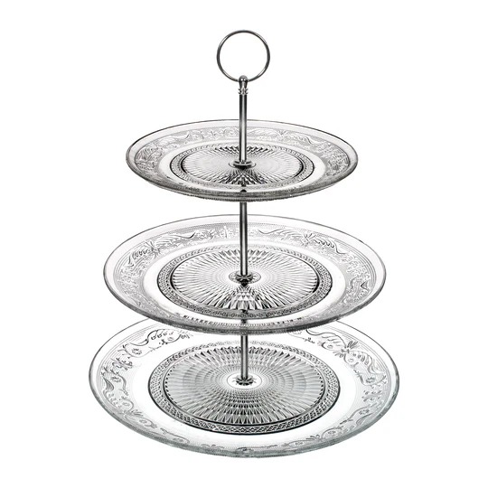 Alzata in vetro a tre piani, stile elegante e funzionale
