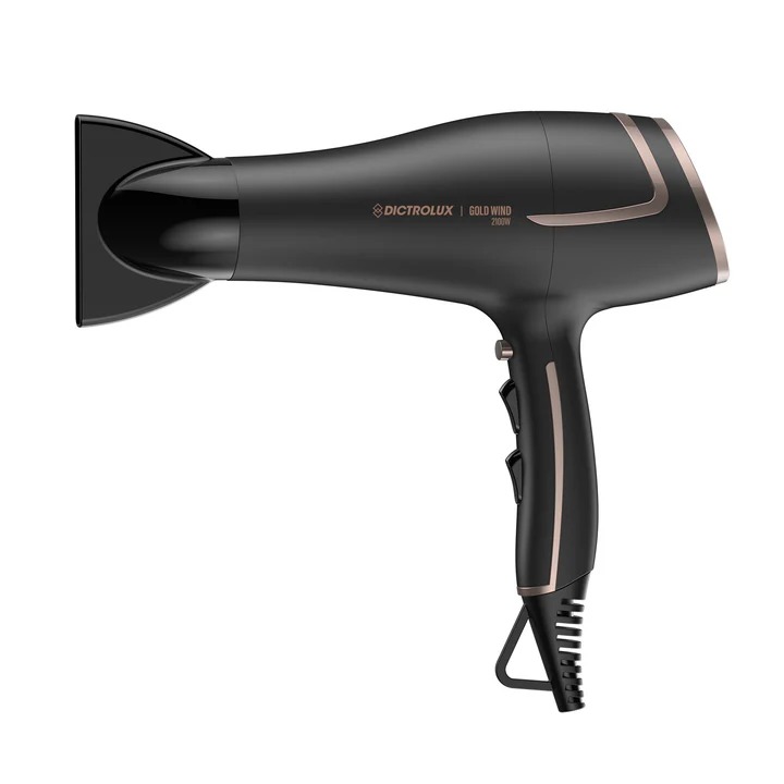 Eleva la tua routine di bellezza con l’asciugacapelli Dictrolux Gold Wind, un mix perfetto di eleganza e prestazioni professionali. Caratterizzato da un raffinato design nero con dettagli in Rose Gold, questo phon è progettato per offrire uno styling impeccabile, proteggendo la salute dei tuoi capelli grazie alla gestione avanzata del calore e del flusso d’aria.