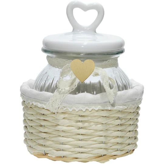 Barattolo Portaconfetti Singolo con Cuore in Ceramica e Cestino Shabby Chic