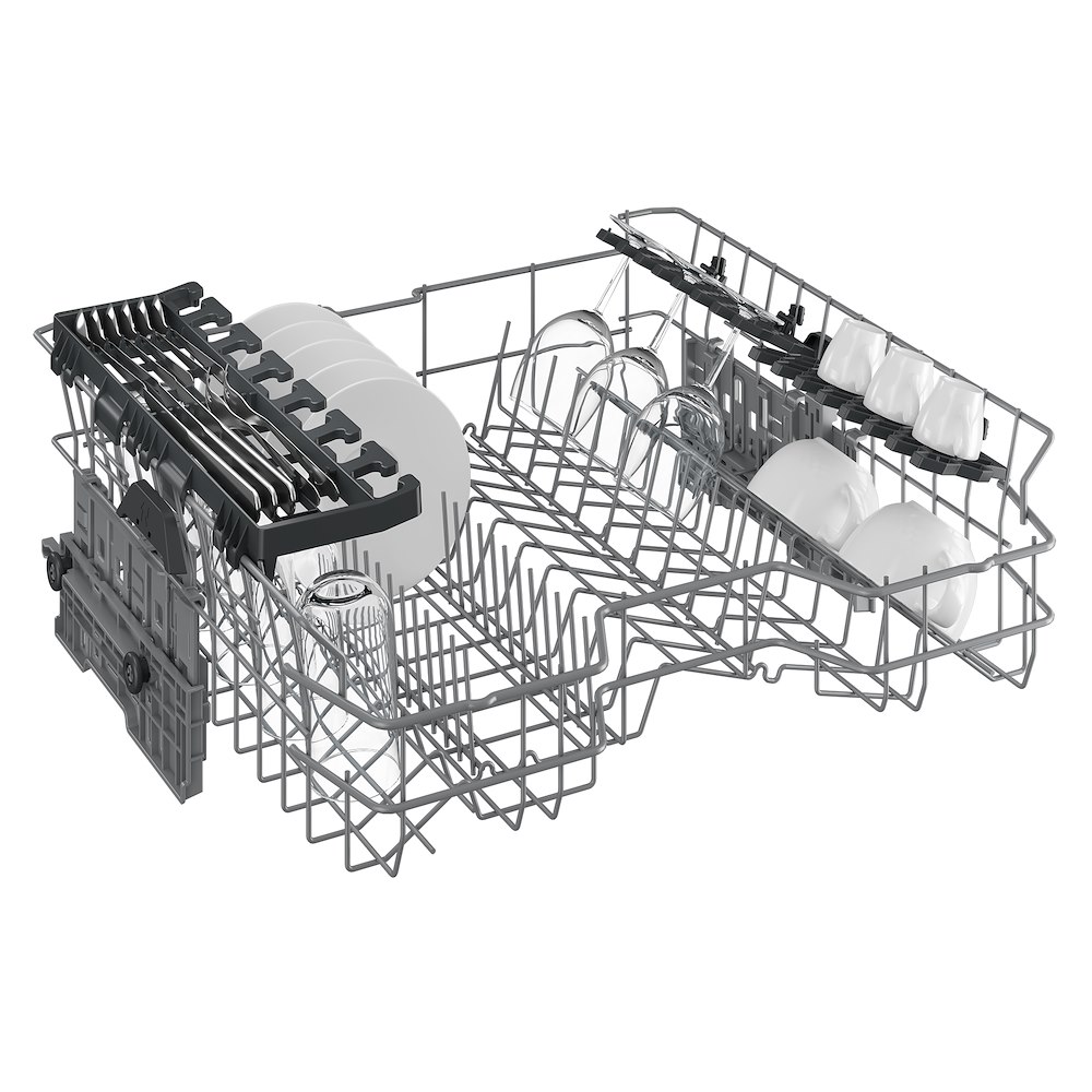 L’efficacia di pulizia è garantita da 5 programmi di lavaggio preimpostati e 4 livelli di temperatura, tra cui spiccano le opzioni Daily, Eco 50°C, Express e Intensive 70°C per lo sporco più ostinato. Per carichi rapidi e stoviglie poco sporche, è disponibile il programma Quick&Shine e un’opzione di lavaggio breve. La flessibilità interna è uno dei punti di forza di questo modello, grazie al cestello superiore regolabile e alla presenza di un porta posate dedicato, che consentono di ottimizzare lo spazio per pentole e piatti di diverse dimensioni.