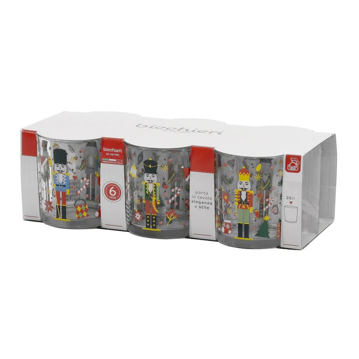 Set 6 Bicchieri Natalizi in Vetro “Schiaccianoci Festive” – Perfetto per le Feste!