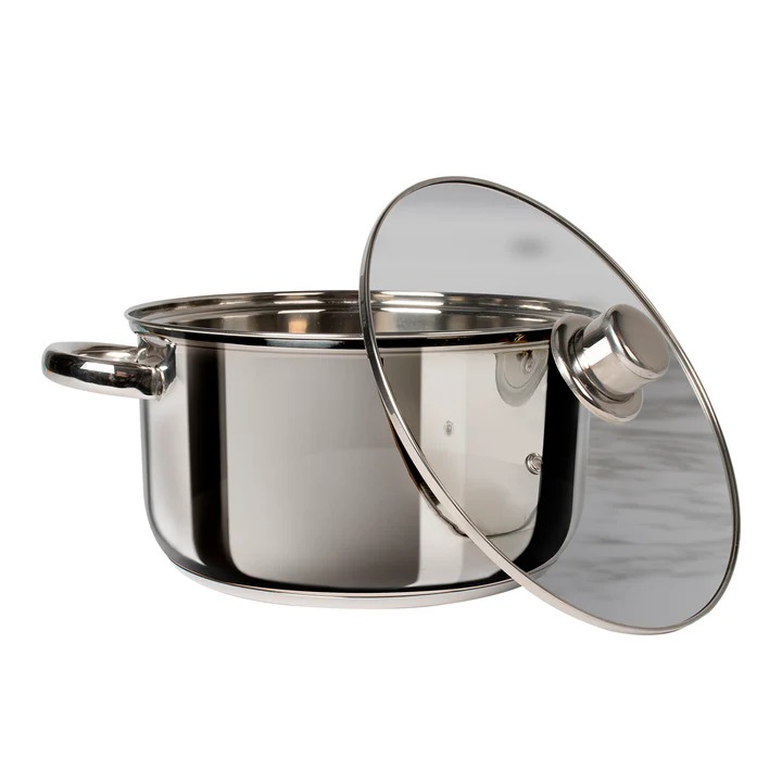 Casseruola in acciaio inox con coperchio in vetro diametro 20 cm