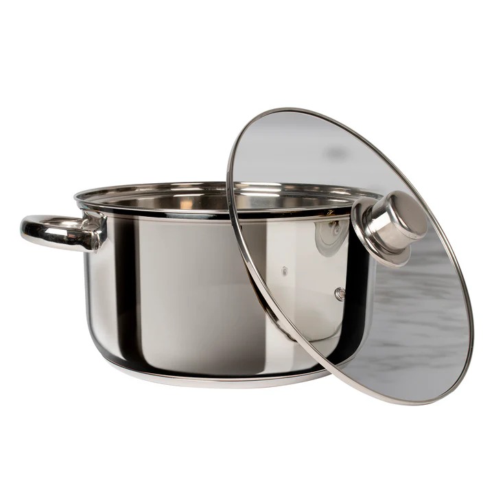 Casseruola in acciaio inox con coperchio in vetro diametro 24 cm