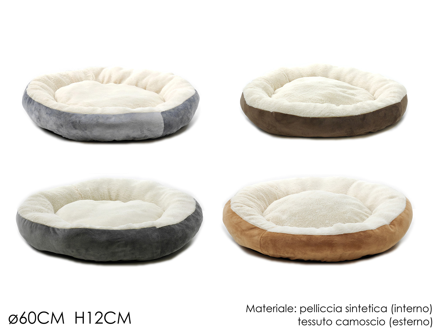 • Dimensioni Generose: Con un diametro di 60 cm e un’altezza di 12 cm, offre ampio spazio per gatti di ogni taglia e cani di piccola/media taglia.