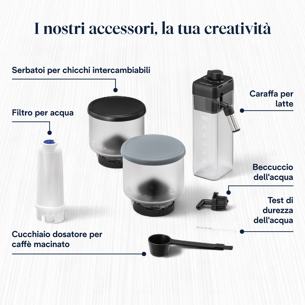 • Caraffa Latte Removibile: Dopo l’uso, la caraffa può essere comodamente riposta in frigorifero per mantenere il latte fresco.