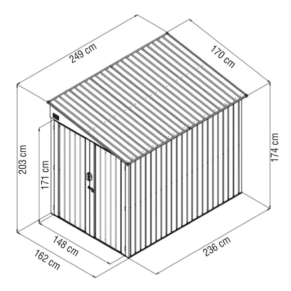 • Massima Resistenza: Realizzato in lamiera zincata e verniciata, questo deposito sfida il tempo. È progettato per resistere alle intemperie, ai raggi UV e agli sbalzi termici senza alcuna necessità di manutenzione periodica.