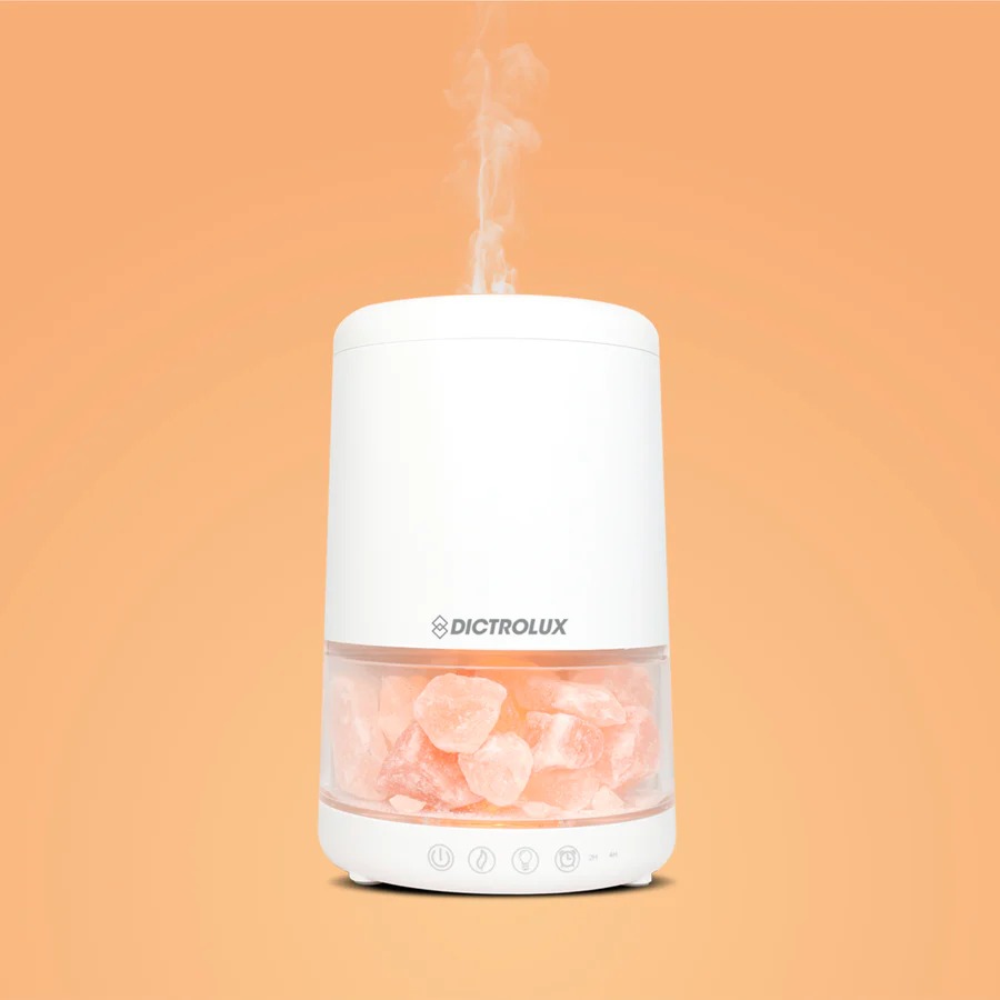 Il diffusore funge anche da lampada d’arredo: la sua luce calda e soffusa attraversa i blocchi di sale minerale, creando sfumature ambrate che riducono lo stress. Grazie alla regolazione su tre intensità, puoi adattare la luminosità a ogni momento: dalla luce soffusa per favorire il sonno a un’illuminazione più vibrante per il tuo angolo lettura.