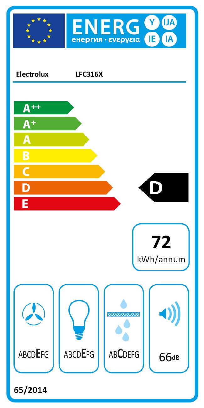 Per garantire la massima visibilità durante la preparazione dei pasti, la Electrolux LFC316X è dotata di 2 lampade a LED. Questa tecnologia di illuminazione non solo offre una luce chiara e brillante sul piano di lavoro, ma è progettata per durare più a lungo e consumare meno energia rispetto alle lampadine tradizionali. La cappa è classificata in classe di efficienza energetica D, con un consumo annuo stimato di 72,1 kWh, rappresentando un equilibrio tra prestazioni costanti e gestione dei costi operativi domestici.