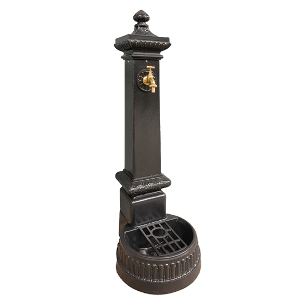 La nostra fontana verticale a piantana è la soluzione ideale per chi cerca un punto acqua elegante e funzionale che non richieda l’appoggio a una parete. Caratterizzata da una struttura slanciata e una base solida, questa fontana in alluminio color antracite trasforma ogni angolo del giardino in un’area pratica e di grande impatto estetico.