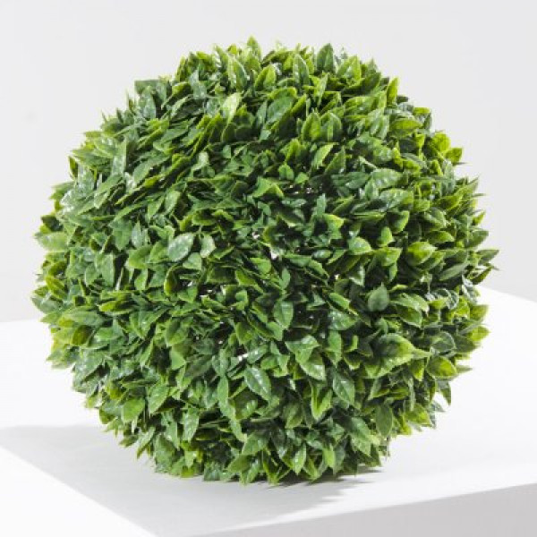 Siepe artificiale sferica con struttura e rametti in PVC.