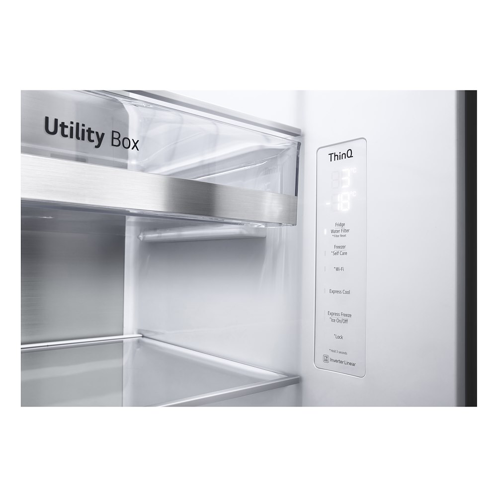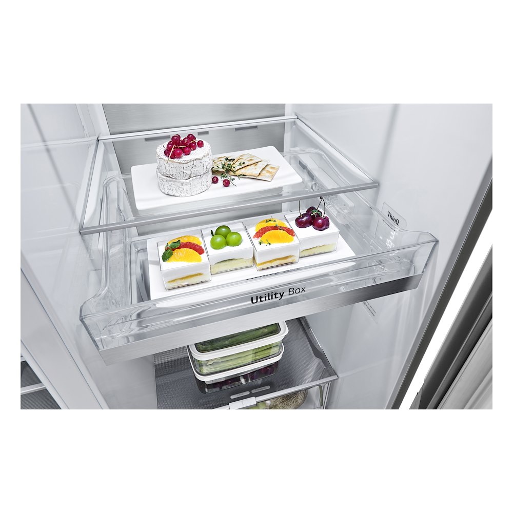 Il frigorifero LG GSLV90PZAD (Codice: 857370) è un imponente modello Side-by-Side a libera installazione che si distingue per la sua elegante finitura in acciaio inossidabile e le sue avanzate funzioni intelligenti. Caratterizzato da una straordinaria capacità netta totale di 635 litri (416 litri per il vano frigorifero e 219 litri per il congelatore), questo elettrodomestico è la soluzione ideale per le famiglie numerose che necessitano di ampi spazi e di una gestione smart della spesa tramite connettività Wi-Fi con tecnologia Smart ThinQ.