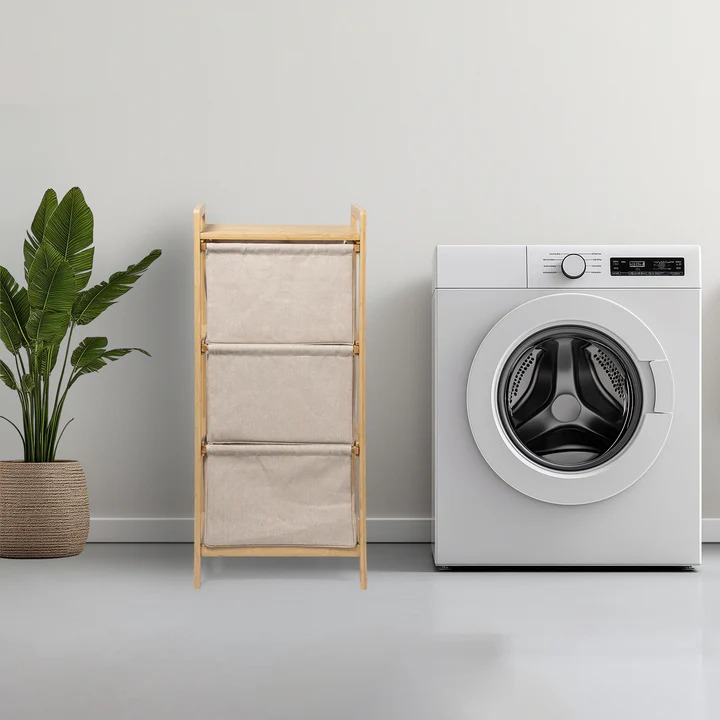 Mobiletto Portabiancheria 3 Scomparti Linea Bamboo