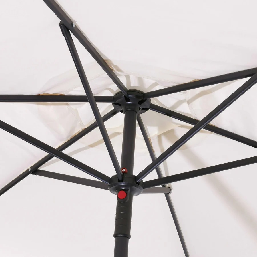 Progettato per durare nel tempo, l’ombrellone presenta una struttura interamente in acciaio verniciato, con un palo centrale da Ø 32 mm che offre un supporto stabile e sicuro. Le 6 stecche rinforzate (10×18 mm) assicurano che il telo rimanga ben teso anche in presenza di leggere brezze.