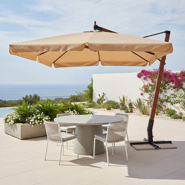 Trasforma il tuo outdoor in un’area di puro relax con questo elegante ombrellone a braccio laterale. Caratterizzato da una robusta struttura in legno e un design raffinato, è la soluzione ideale per creare ampie zone d’ombra in giardino, in terrazza o a bordo piscina, garantendo comfort e protezione solare con uno stile naturale.