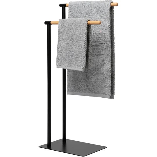 Piantana Portasciugamani 2 Posti in Acciaio Inox Nero con Elementi in Bamboo