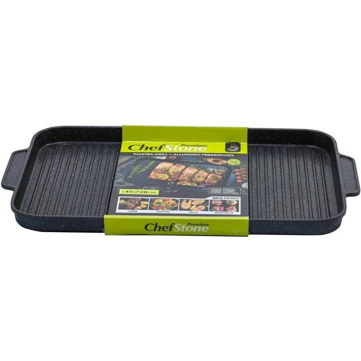 Piastra Grill con 2 manici e fondo a induzione Linea ChefStone 45×28 cm