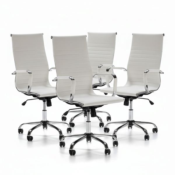 1. Estetica Professionale: Il contrasto tra il bianco dell’ecopelle e il cromo dell’acciaio illumina l’ufficio, rendendolo subito più moderno.
