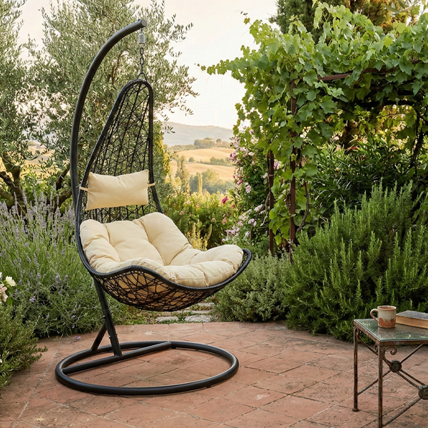 Trasforma il tuo outdoor in un’oasi di puro relax con la nostra poltrona sospesa a nido. Perfetta per il balcone, il terrazzo o il giardino, questa seduta combina un’estetica contemporanea con una struttura robusta, ideale per chi cerca un angolo di pace senza rinunciare allo stile.