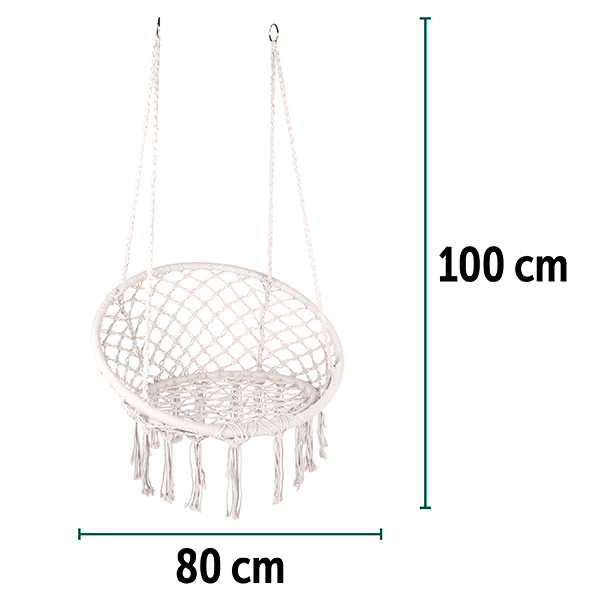 Dimensioni Compatte: Con un diametro di 80 cm e un’altezza totale di sospensione di 100 cm, si adatta perfettamente a piccoli balconi, portici o direttamente all’interno della camera da letto o del soggiorno.