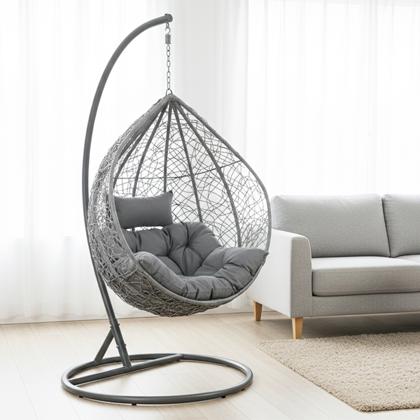 Porta l’eleganza del design contemporaneo nei tuoi spazi esterni con la nostra poltrona sospesa a uovo in grigio. Questa colorazione neutra e raffinata è perfetta per chi desidera un angolo relax che trasmetta calma e modernità, integrandosi perfettamente con pavimentazioni in pietra, cemento o legno.
