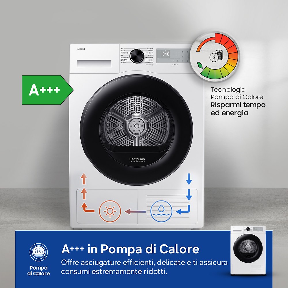 Samsung DV90DG52A0AHET: Asciugatrice Serie 5000D Crystal EcoDry da 9 kg