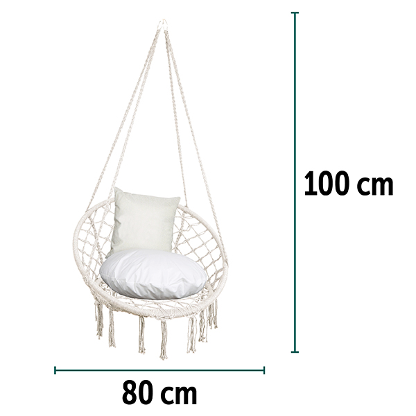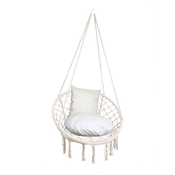 Realizzata con una robusta struttura circolare e un intreccio in corda resistente, questa poltrona pensile è progettata per cullarti delicatamente. Le eleganti frange decorative sul fondo aggiungono un tocco romantico e vintage, rendendola perfetta per: