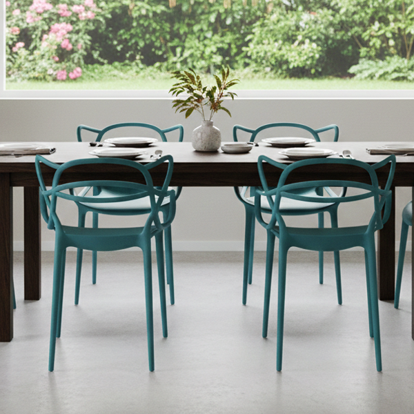 Realizzata in polipropilene di alta qualità, la sedia Horn color ottanio è progettata per chi non si accontenta del solito arredamento. La finitura è opaca e piacevole al tatto, mentre la struttura ergonomica avvolge la schiena offrendo un comfort superiore. È la sedia perfetta per dare identità a una sala da pranzo, a una camera da letto o a uno studio creativo.