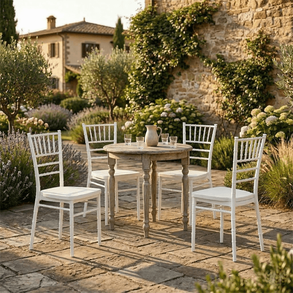 Aggiungi un tocco di classe ai tuoi spazi con la Sedia Modello Mint, un complemento d’arredo che fonde l’estetica classica delle sedie da cerimonia con la praticità dei materiali d’avanguardia. Caratterizzata da una raffinata struttura che richiama il design del bambù, questa sedia in polipropilene bianco è la scelta ideale per chi cerca un prodotto versatile, leggero e incredibilmente resistente.