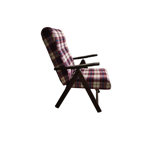 Il comfort è garantito da una seduta e uno schienale generosamente imbottiti, pensati per accoglierti nei tuoi momenti di pausa. Il rivestimento è realizzato in un tessuto resistente con un elegante motivo a quadri (stile mattonella), dove i toni caldi del bordeaux si fondono con la neutralità del beige, creando un contrasto visivo perfetto per ambienti classici o rustici.