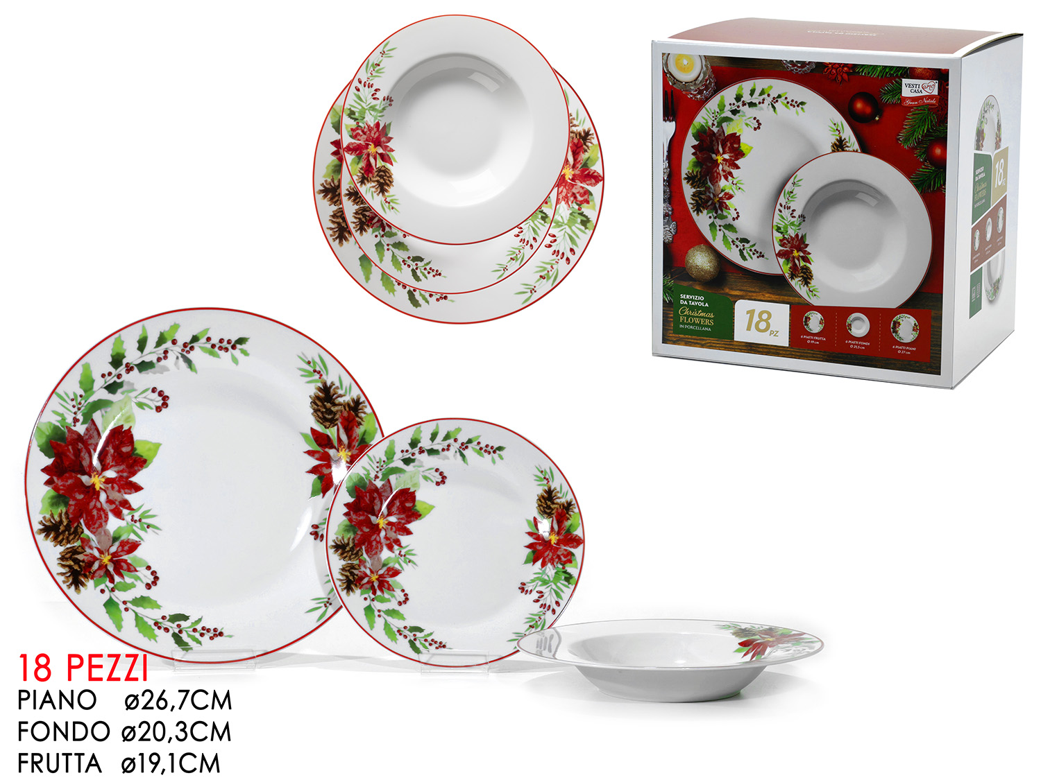 Servizio Piatti Natale 18 Pezzi Porcellana Decorazioni Poinsettia Agrifoglio – Set Tavola Festivo.