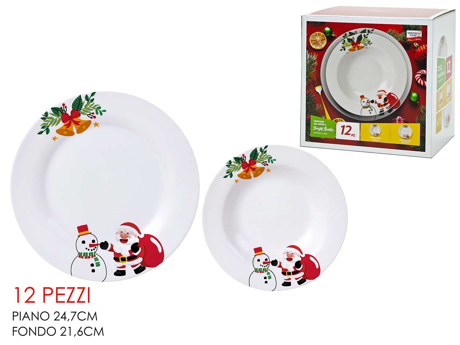 Set 12 Piatti Natalizi Babbo Natale & Pupazzo di Neve
