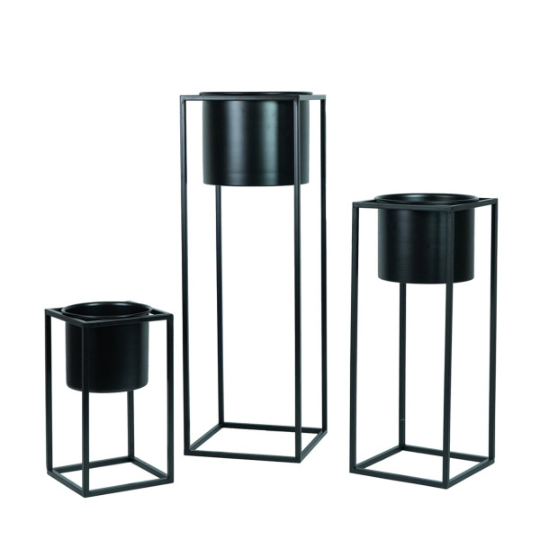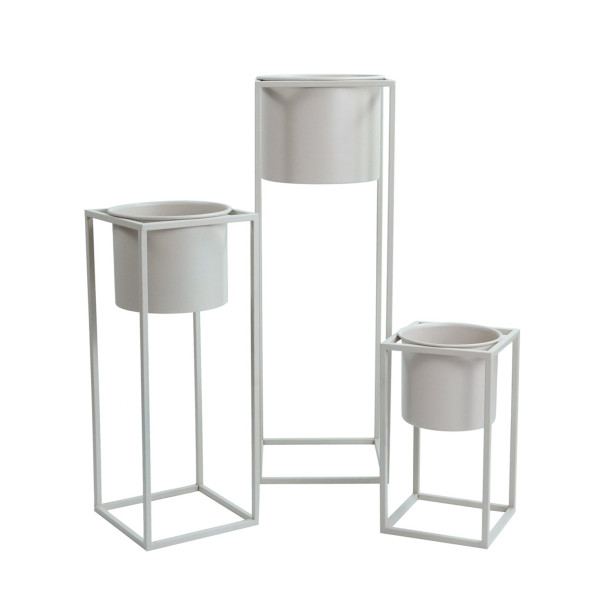 Set 3 portavasi con piedistallo in metallo verniciato.