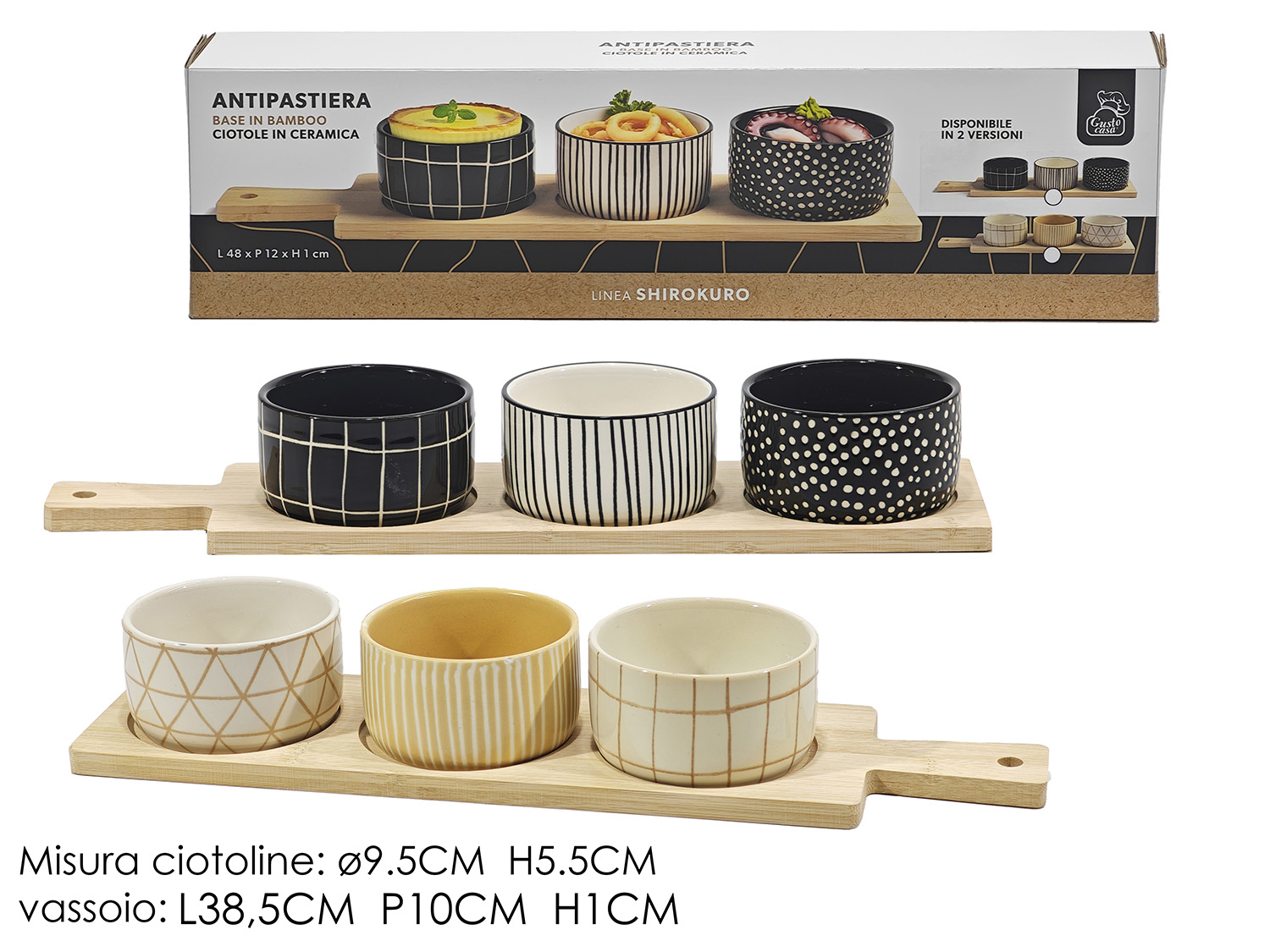 Set 3pz Antip. Shirokuro c/vassoio bamboo