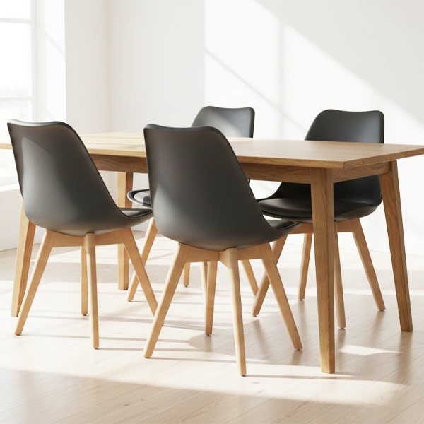 Set 4 Sedie Design Nordico – Nero con Cuscino e Gambe in Legno Natural Il prezzo originale era: 139,99 €.Il prezzo attuale è: 99,90 €.