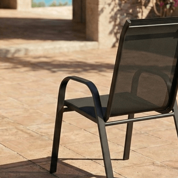 Comfort e Traspirabilità: la seduta e lo schienale sono realizzati in textilene (70% poliestere, 30% PVC), un materiale tecnico che assicura comfort senza necessità di cuscini e un’ottima ventilazione.