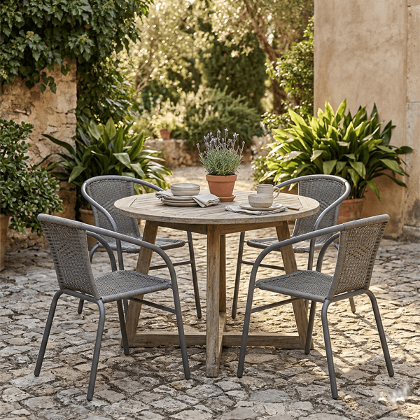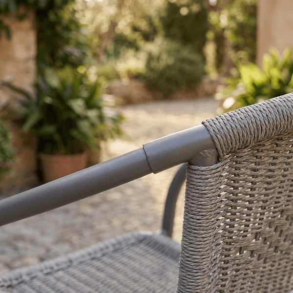 • Comfort Ergonomico: Schienale avvolgente e braccioli integrati per offrire il massimo relax durante pranzi e cene all’aperto.