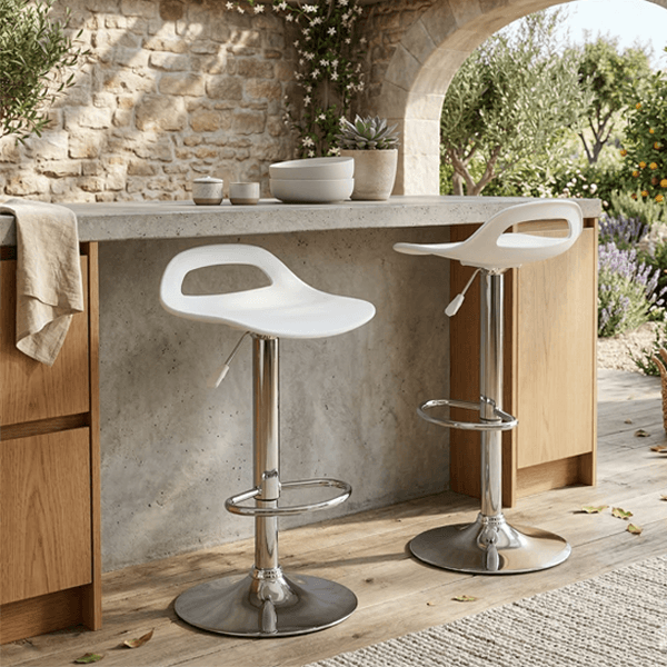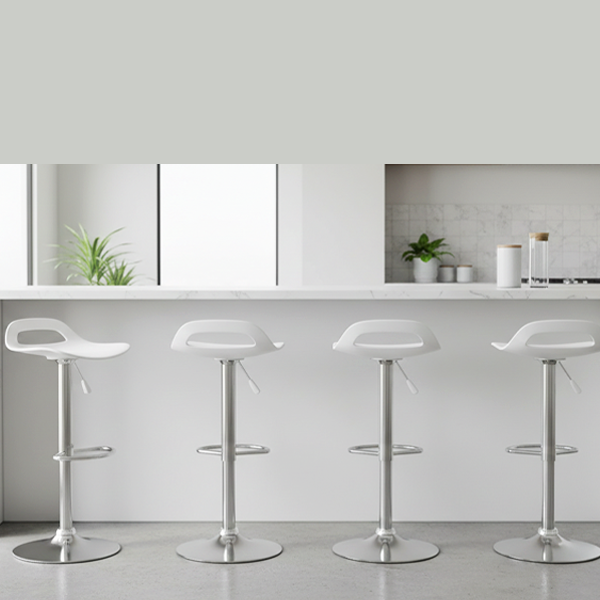 Ogni sgabello è caratterizzato da una seduta ergonomica in polipropilene bianco di alta qualità, resistente e facile da pulire. La struttura è sostenuta da una solida base in metallo cromato, che non solo garantisce stabilità, ma aggiunge un tocco di luce e raffinatezza al tuo arredamento.