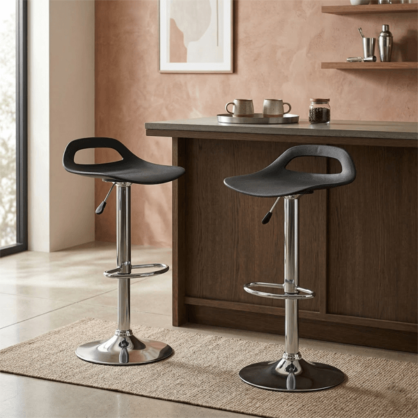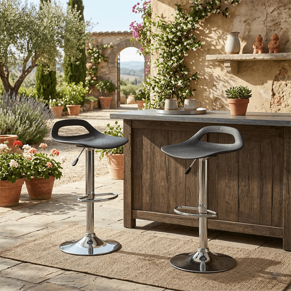 Disponibili nelle varianti bianco classico e nero moderno, questi sgabelli si adattano perfettamente a qualsiasi palette cromatica. La seduta in polipropilene di alta qualità offre una resistenza superiore e una facilità di pulizia immediata, mentre la base in metallo cromato aggiunge un tocco di brillantezza contemporanea a ogni ambiente.