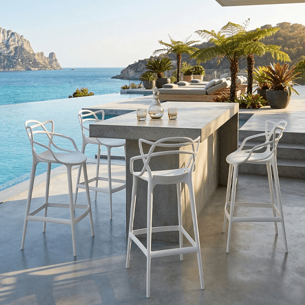 Arredo Coordinato: Ideale per completare penisole, banconi snack o tavoli alti con un look uniforme e ricercato.