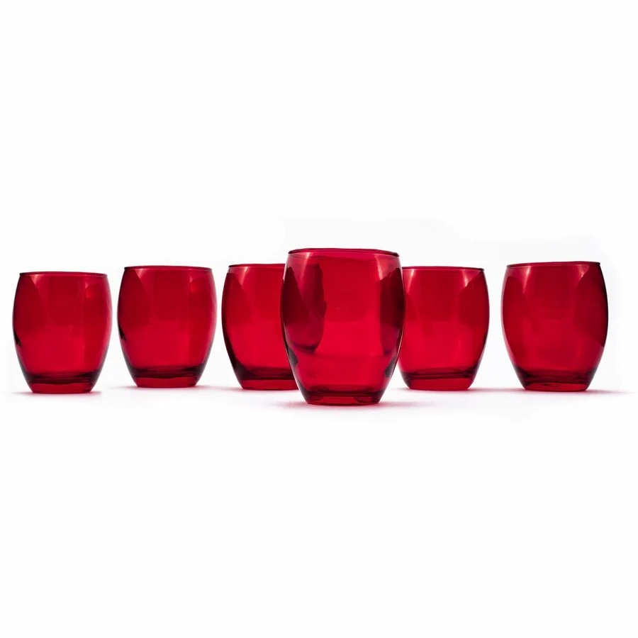 Set 6 Bicchieri Acqua/Vino in Vetro Rosso Liscio – Forma a Barilotto