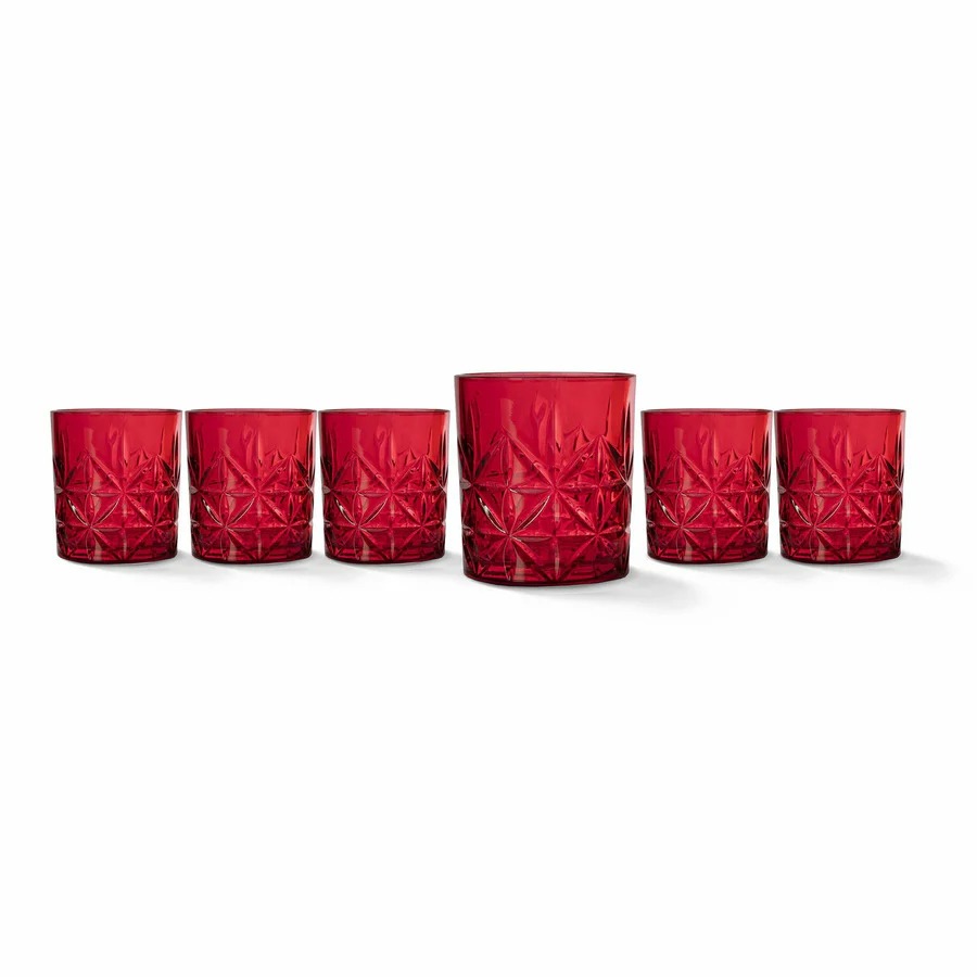 Set 6 Bicchieri Tumbler Rossi in Vetro con Lavorazione a Stella – Stile Moderno