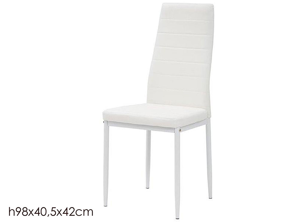 Ogni sedia è progettata per offrire un’esperienza di seduta eccellente. La seduta imbottita è rivestita in poliuretano di alta qualità con un elegante effetto pelle, piacevole al tatto e facilissimo da pulire con un semplice panno umido. Le linee pulite dello schienale alto assicurano un supporto posturale ottimale durante i pasti o le ore di lavoro.