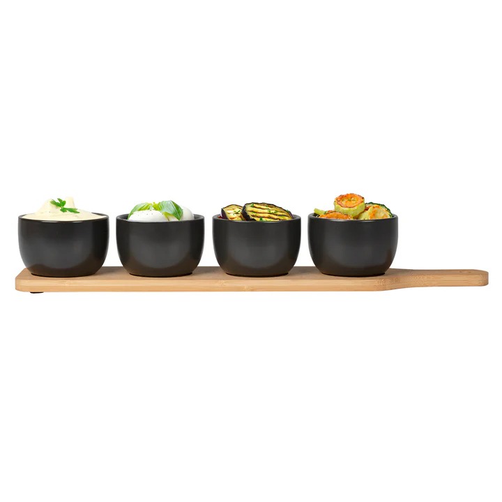 Set Antipastiera 4 ciotole con Base in Bamboo