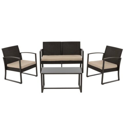 • Contrasto Elegante: La struttura in metallo nero incornicia il decoro del tavolo e delle sedie, offrendo un look solido e senza tempo che si abbina facilmente a qualsiasi contesto.