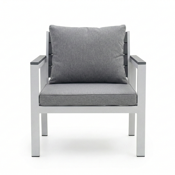 • Cuscini Impermeabili e Sfoderabili: Il set include cuscini grigi con spessore di 4 cm, realizzati in tessuto impermeabile e dotati di pratica cerniera per una facile rimozione e lavaggio.