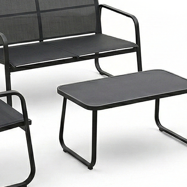 Crea un’area relax funzionale e dal design contemporaneo con il nostro set lounge da 4 pezzi, la soluzione ideale per chi cerca uno stile minimale e una manutenzione ridotta al minimo. Grazie alla sua struttura slanciata e alle sedute in tessuto tecnico, questo set è perfetto per arredare bordi piscina, terrazze moderne o angoli conversazione in giardino senza appesantire visivamente lo spazio.