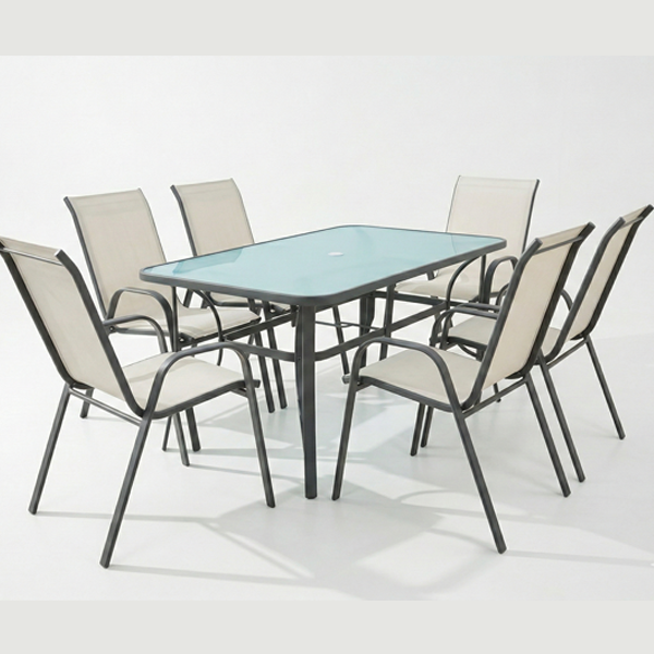 Crea il cuore pulsante del tuo outdoor con il nostro set pranzo da 7 pezzi, la soluzione definitiva per chi ama ospitare pranzi e cene all’aperto in totale comfort. Questo set completo è progettato per accogliere comodamente 6 persone, combinando una struttura solida in acciaio con l’eleganza luminosa delle sedute color beige.