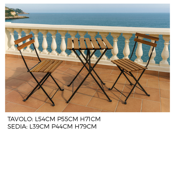 | Materiali | Acciaio e Legno di Acacia | Trattati per l’uso outdoor domestico |