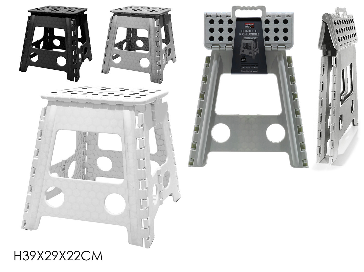 Sgabello Pieghevole Salvaspazio – Altezza 39 cm | Portata 150kg